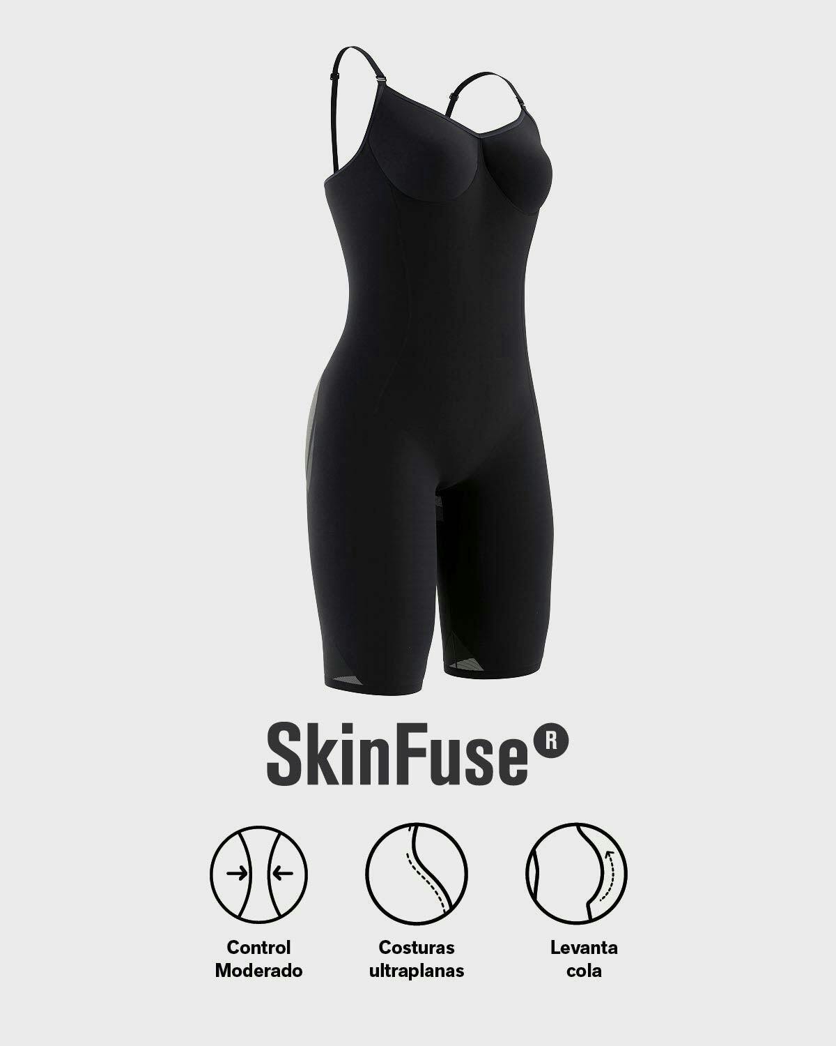 - Faja body elaborada con tecnología SkinFuse® sin costuras: invisible bajo tu ropa.