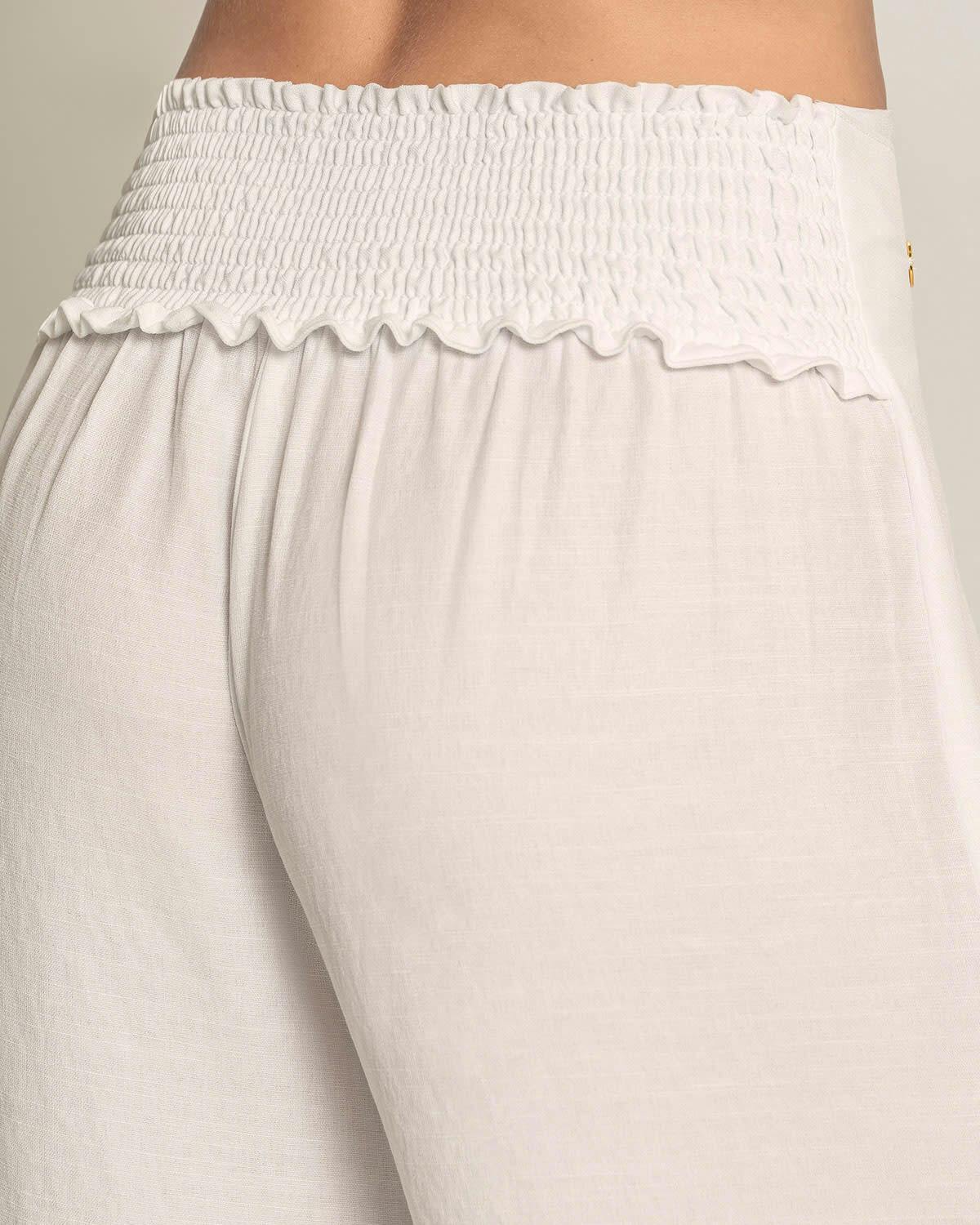 Pantalón playero tipo gaza anudable en el frente en algodón orgánico y rayón