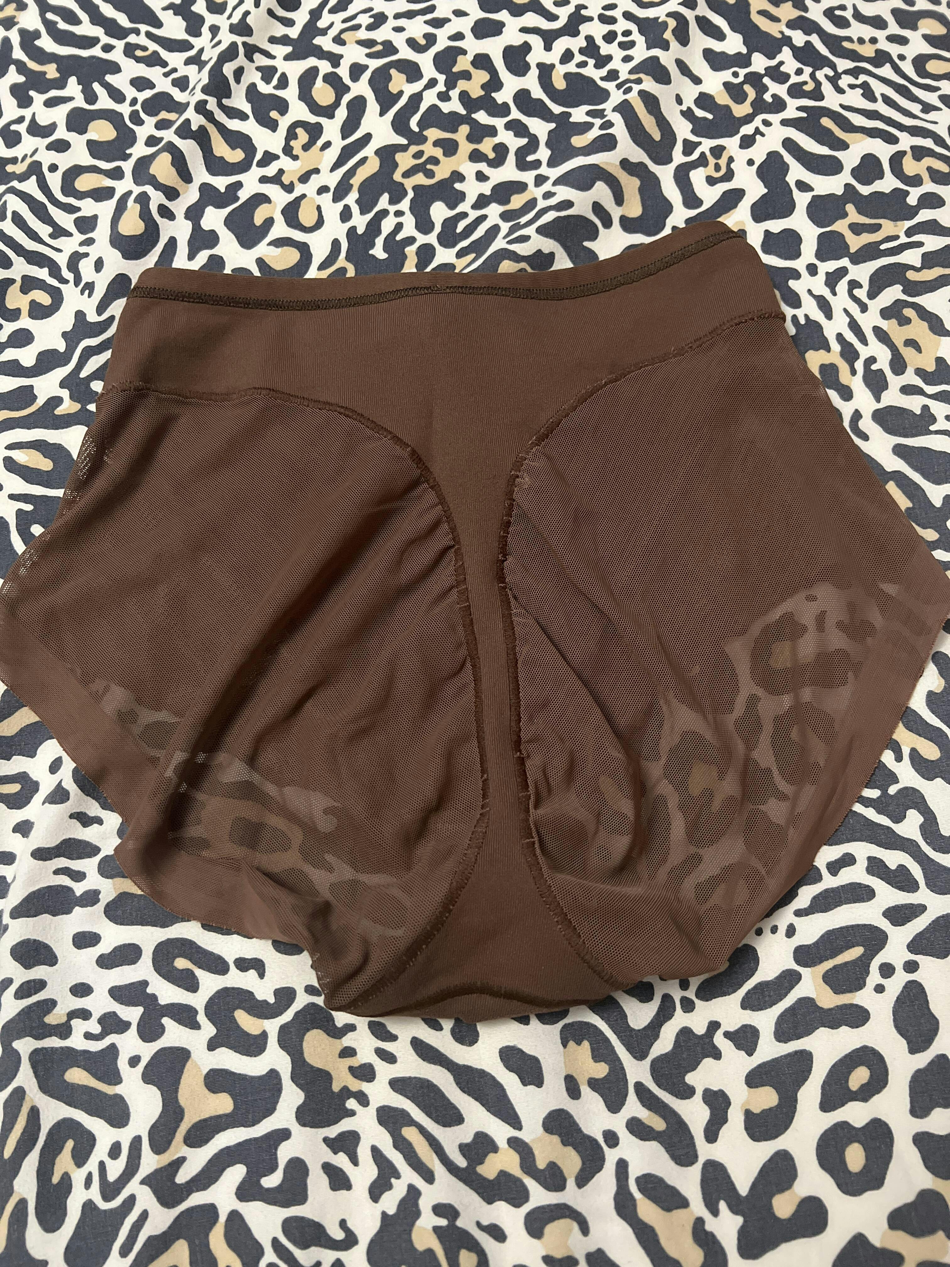 - Panty clásico de tiro alto, con apariencia de tanga brasilera.